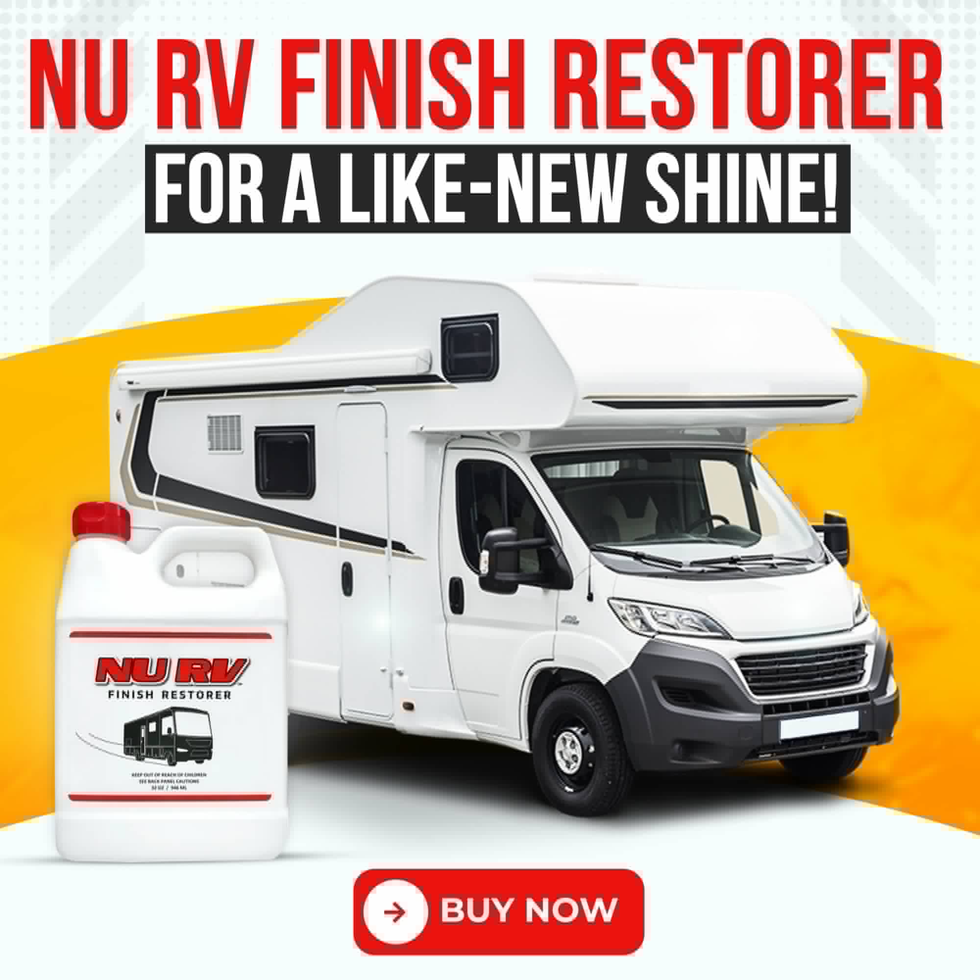 Nu RV instantly restores the color and shine to faded fiberglass and painted surfaces on motorhomes, coaches, trailers and campers.